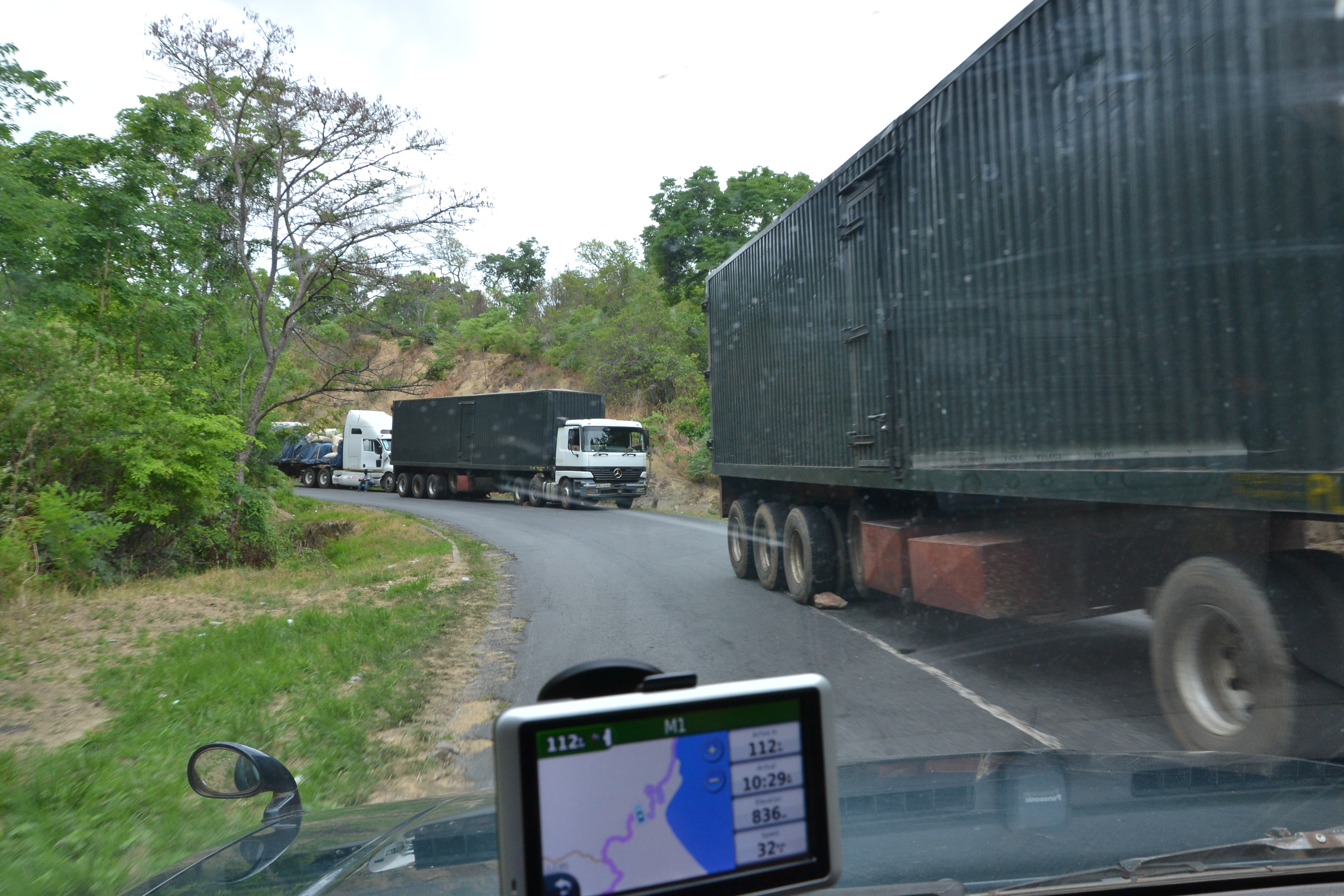 Seeing that the main road was this rough, we congratulated ourselves on not attempting the national park. I was looking forward to being down off the plateau and back on flat ground when we rounded a corner and encountered this: