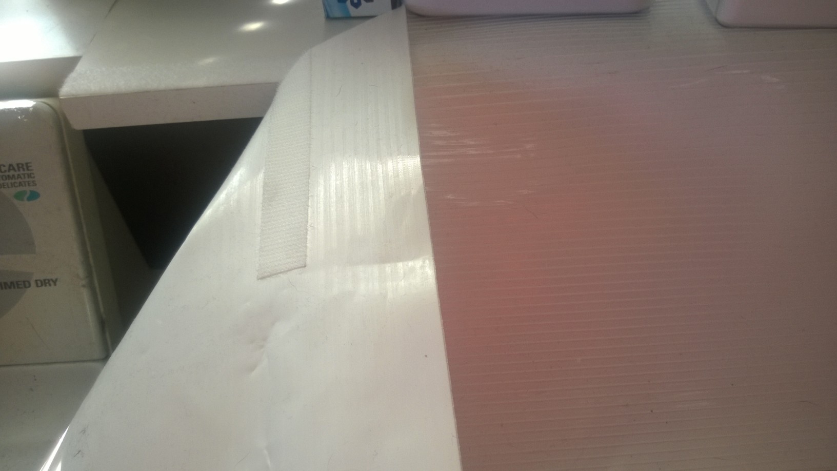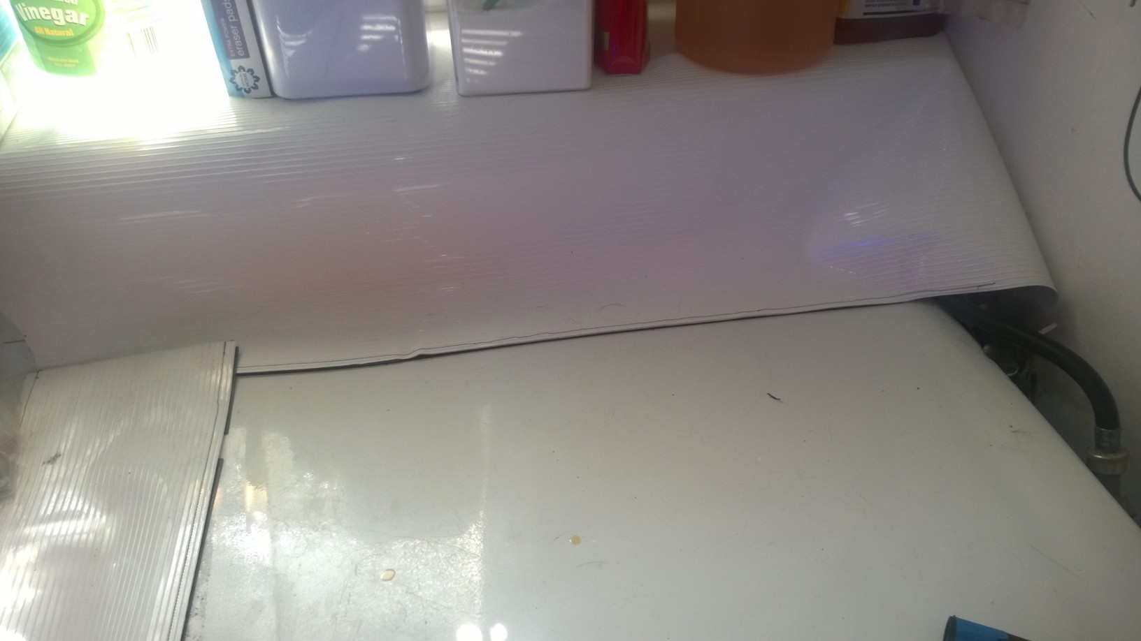 Appliance drop guard: Overall I love my front-load washer, but since it doesn’t have a back panel, things were always falling behind it (and between it and the dryer). After enduring the chore of cleaning behind it one time too many, I came up with this solution. It allows me to get back there if I need to access the drain pipe, but the rest of the time it blocks socks and other miscellanea from falling back there.